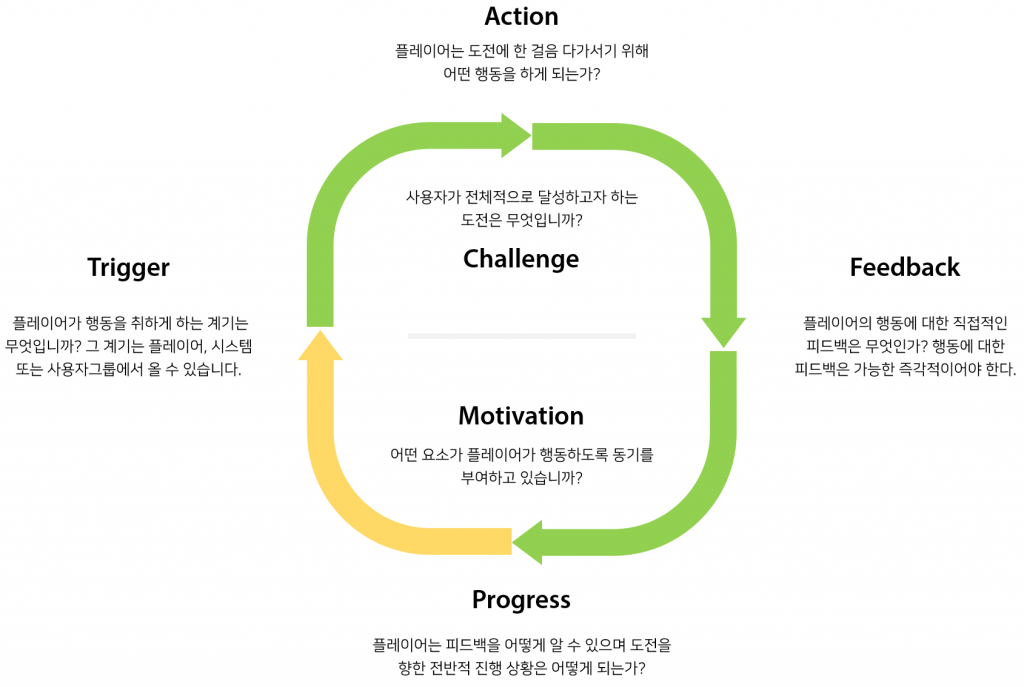 게이미피케이션은 단순히 재미요소를 넣었다고 해서 이루어지는 것이 아닙니다. 위와 같이 다양한 행동, 동기를 발생시키고 개념요소를 통해 정교하게 디자인되어야 하는 것입니다. 또 놓치지 않아야 하는 것은 “놀이”로서 작동되려면 사용자의 자율성 등이 보장되고 주어진 스토리에서 충분히 공감할 수 있는 문제여야 한다는 것도 잊지 말아야겠습니다.