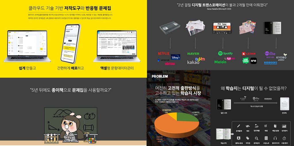 <클라우드출판플랫폼 퀴즈릭스 IR발표자료 중에서>