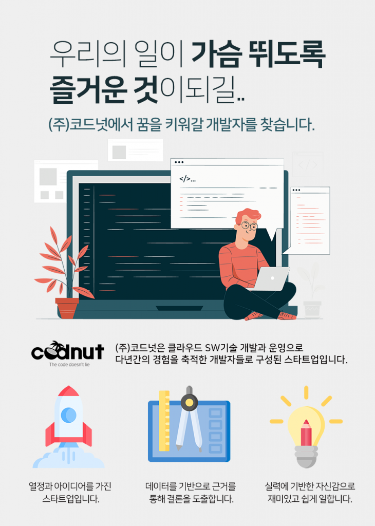 ※ 문의처 : recruit@codnut.com / 010-2854-9601